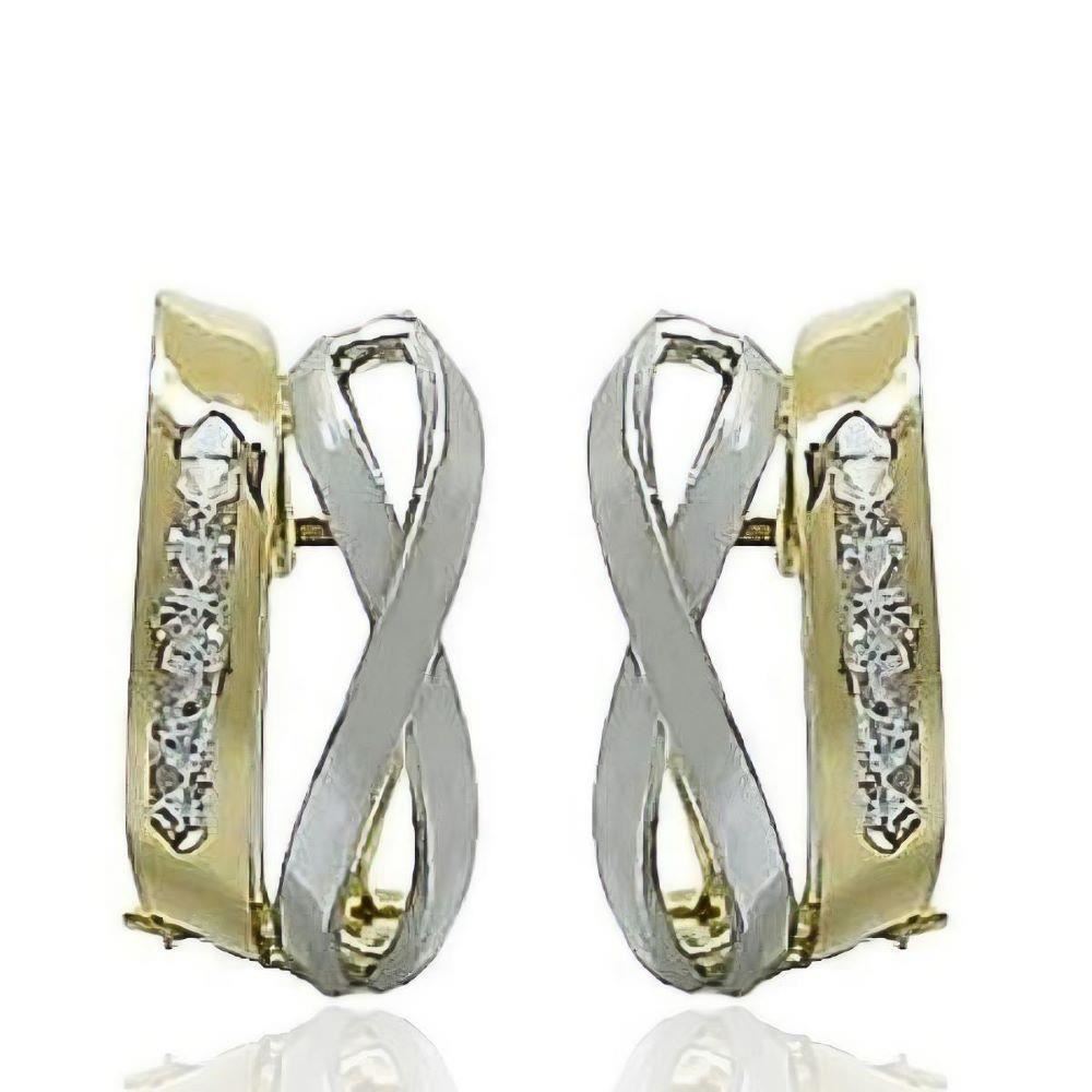 Pendientes Oro Amarillo y Blanco de 18 quilates con circonitas, 16mm y cierre omega.