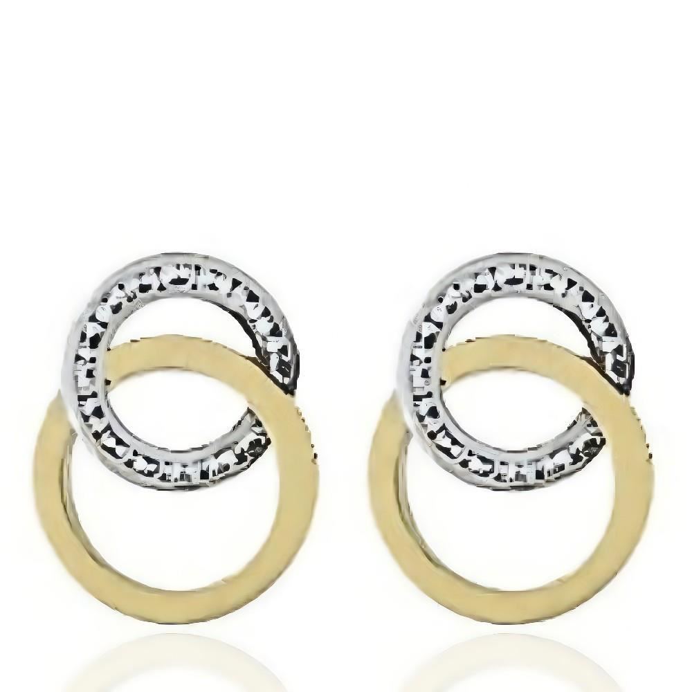 Pendientes Oro Amarillo y Blanco de 18 quilates con circonitas, 16mm y cierre de presión.