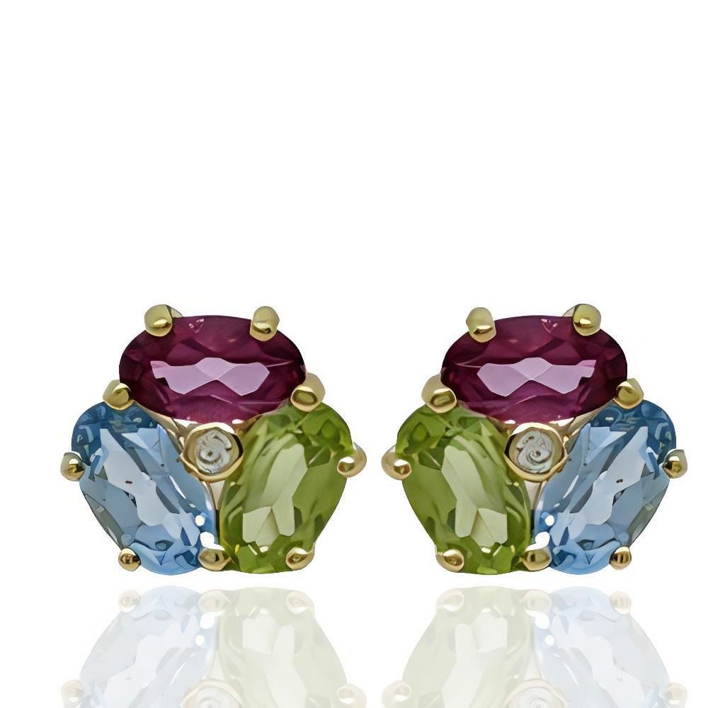 Pendientes Oro Amarillo de 18 quilates con piedras de colores, 8mm y cierre de presión.