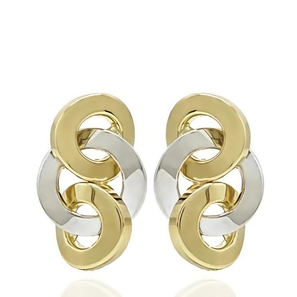 Pendientes Oro Amarillo y Blanco de 18 quilates de nudos, 16mm y cierre catalán.