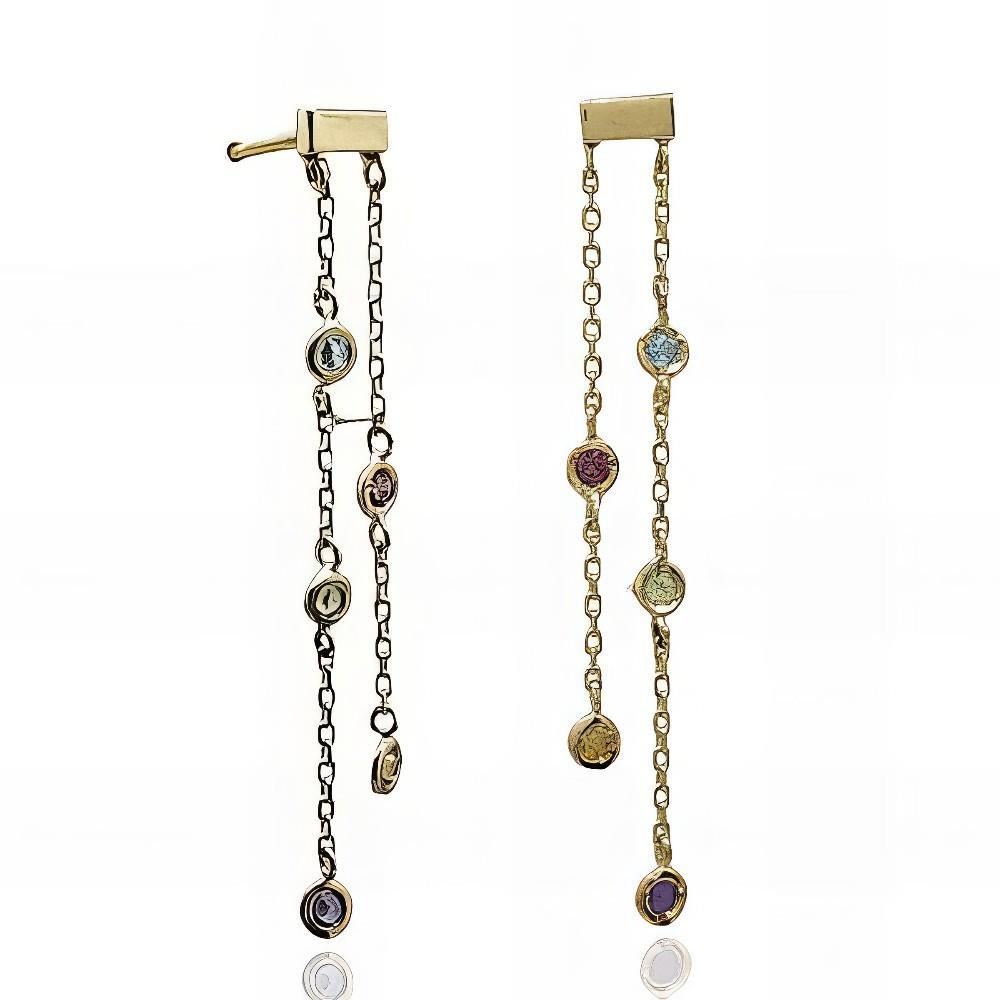 Pendientes Oro Amarillo de 18 quilates con piedras de colores, 34mm y cierre de presión.