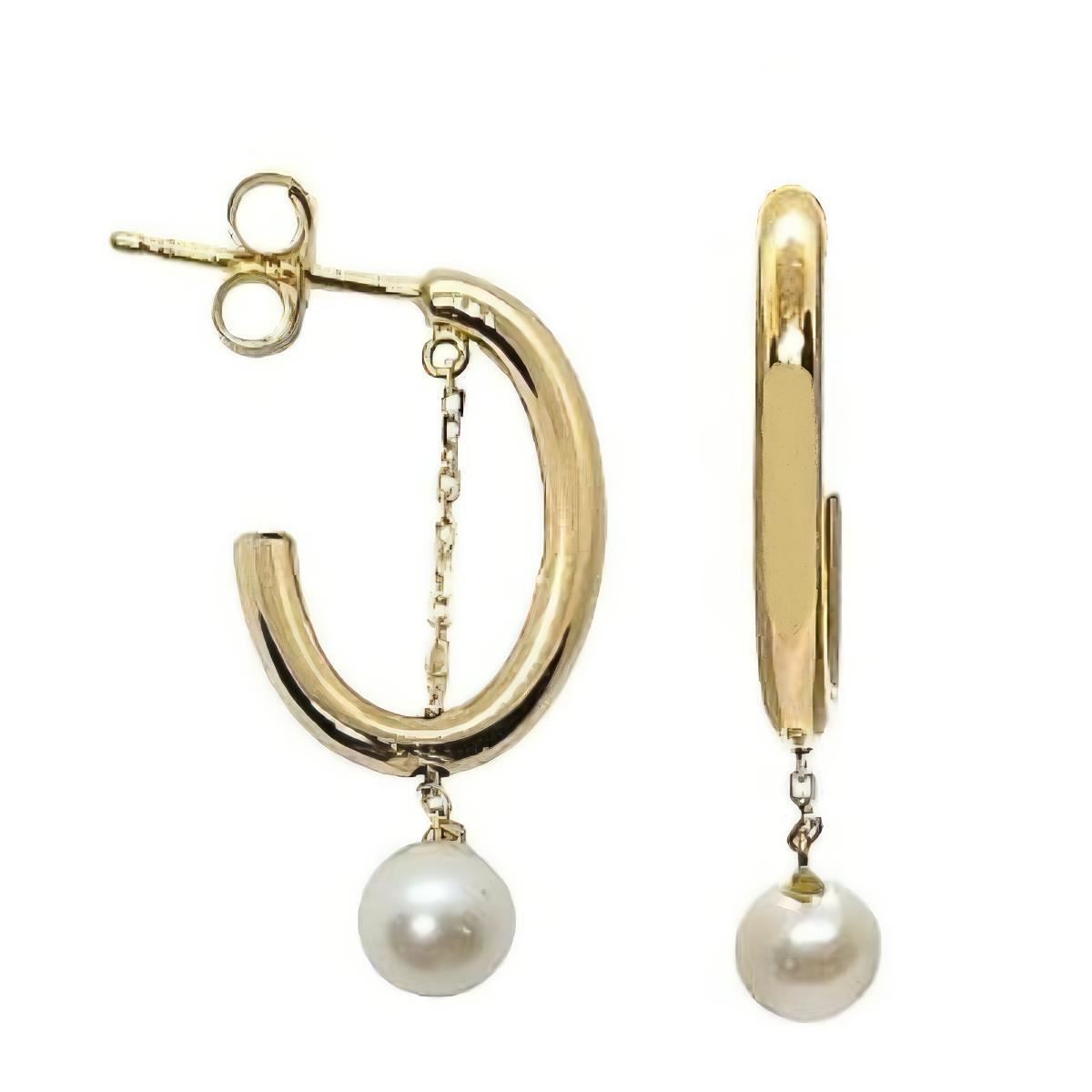 71-11135 - PENDIENTES ARO 2X16MM OVAL CON PERLA 4MM 18K