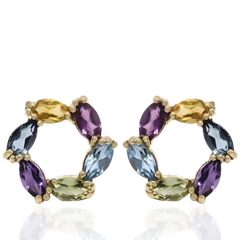 Pendientes Oro Amarillo de 18 quilates con piedras de colores, 10mm y cierre de presión. Opción de gargantilla a juego.