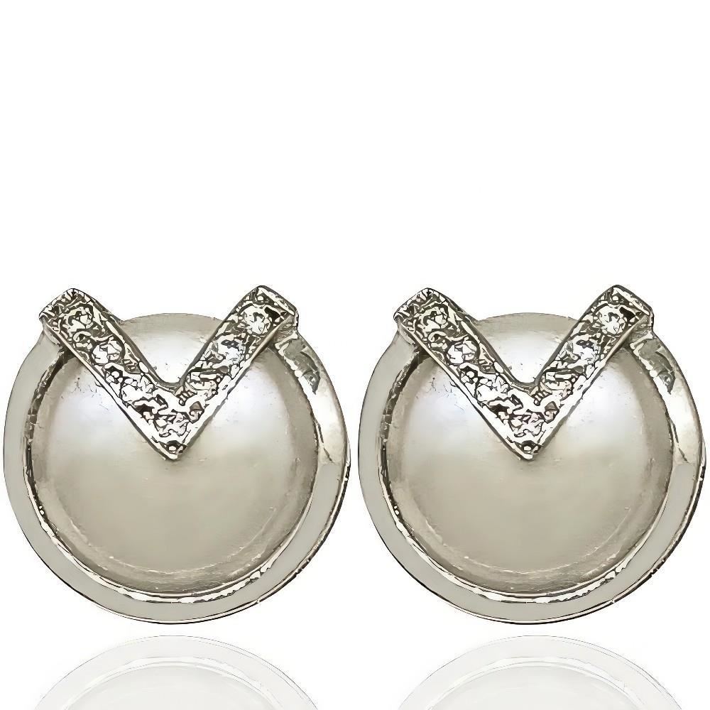 Pendientes Oro Blanco de 18 quilates de perla de 12mm con circonitas y cierre de presión.