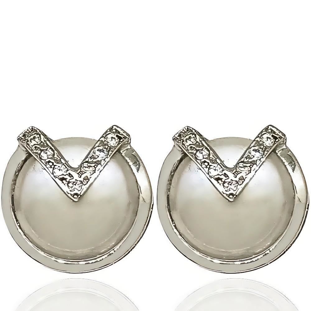 Pendientes Oro Blanco de 18 quilates de perla con circonitas, 12mm y cierre de presión.