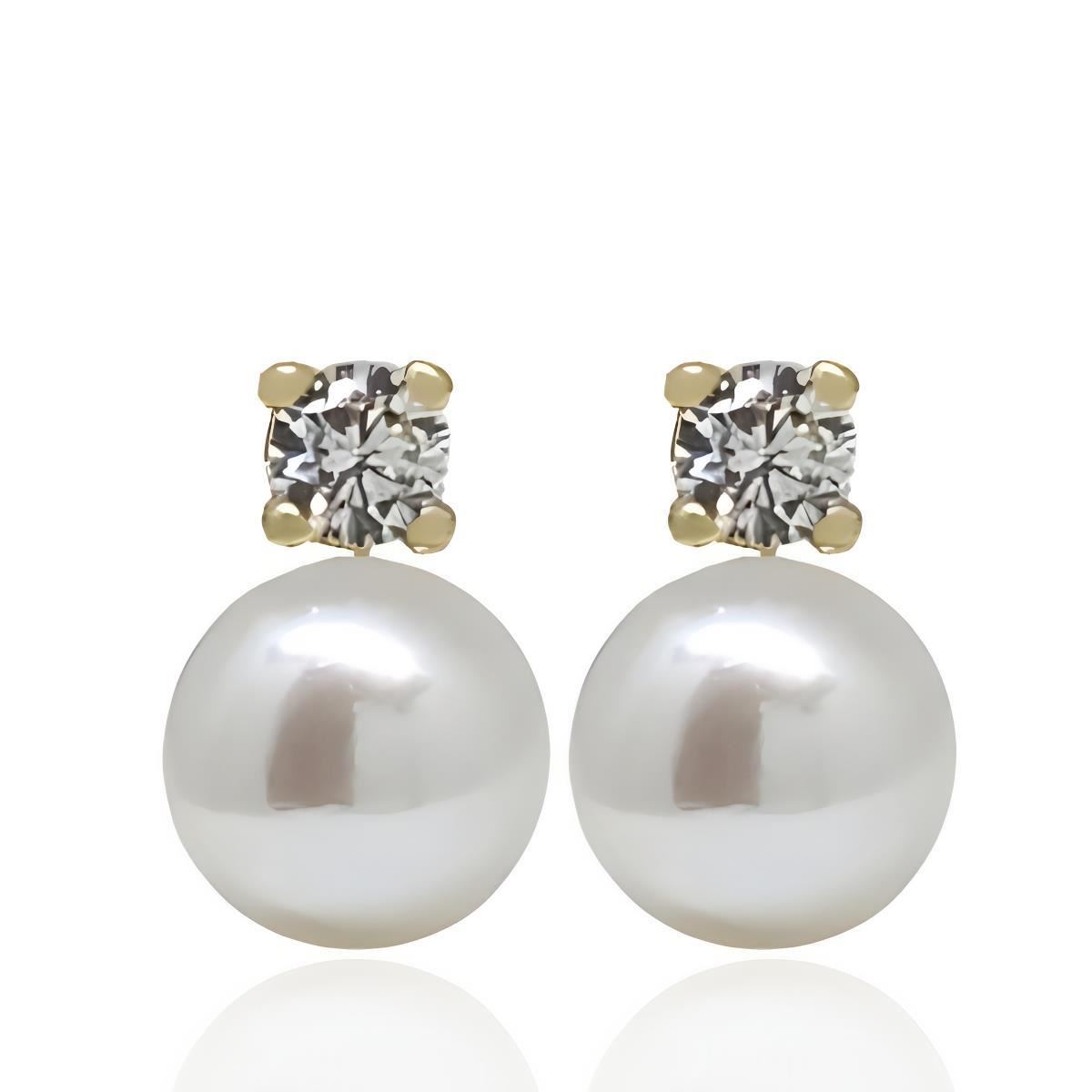 Pendientes Oro Amarillo de 18 quilates con Perla Natural de 9mm y circonita, 14mm y cierre omega.