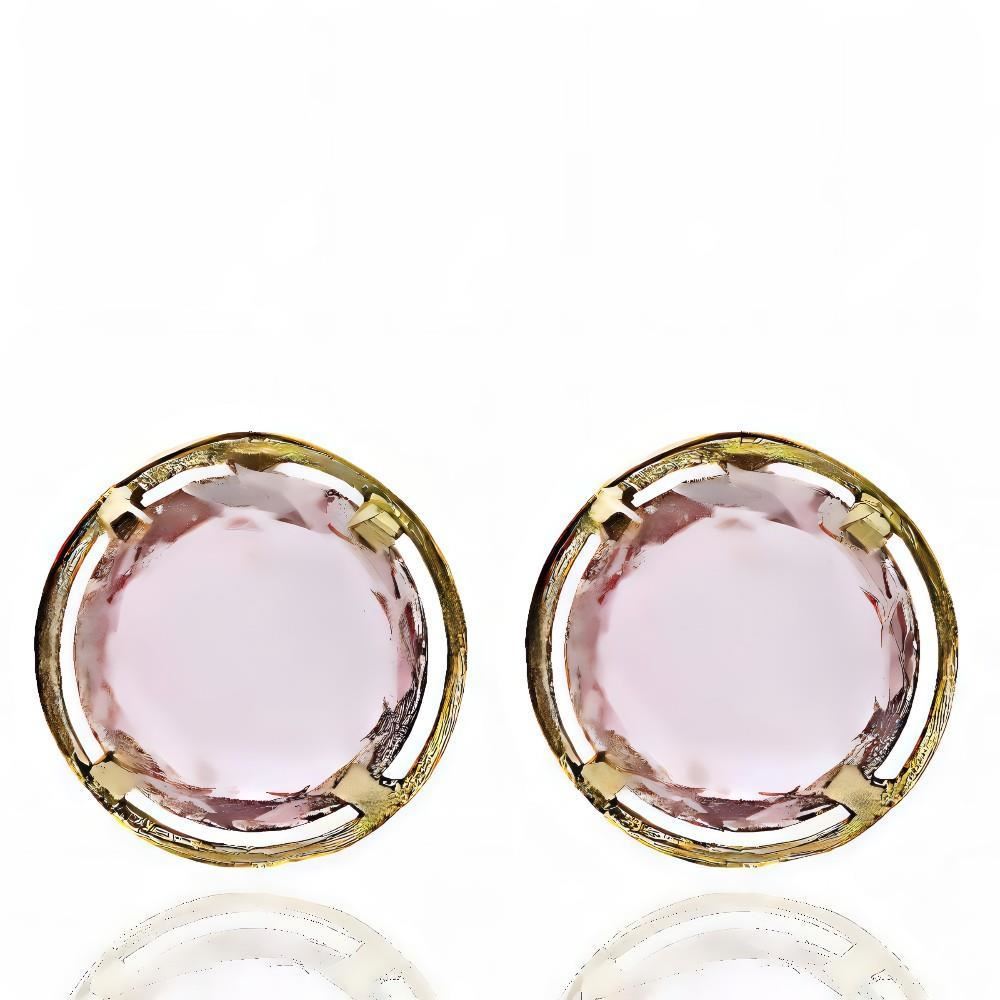 Pendientes Oro Amarillo de 18 quilates con piedra color rosa, 10mm y cierre de presión.
