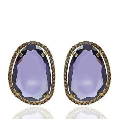 71-4643PM - PENDIENTES PIEDRA COLOR MORADO 20MM 18K