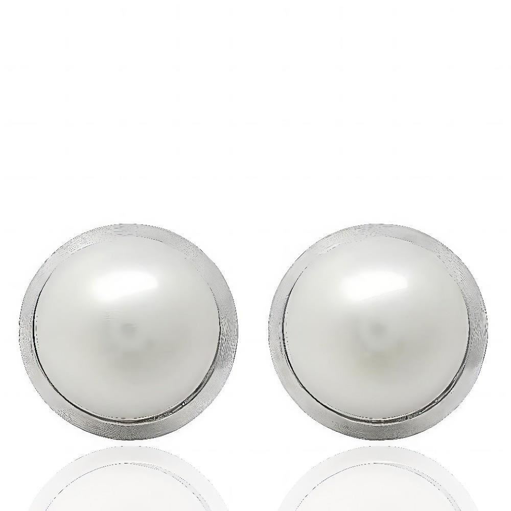 Pendientes Oro Blanco de 18 quilates de perla con bisel, 10mm y cierre de presión.