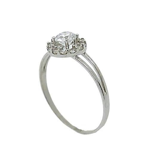 Sortija Oro Blanco de 18 quilates con circonitas, 7mm y brazo liso.