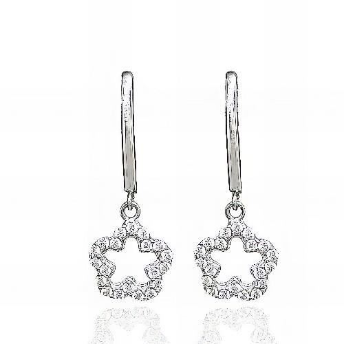 Pendientes Oro Blanco de 18 quilates de flor con circonitas, 23mm y cierre catalán.