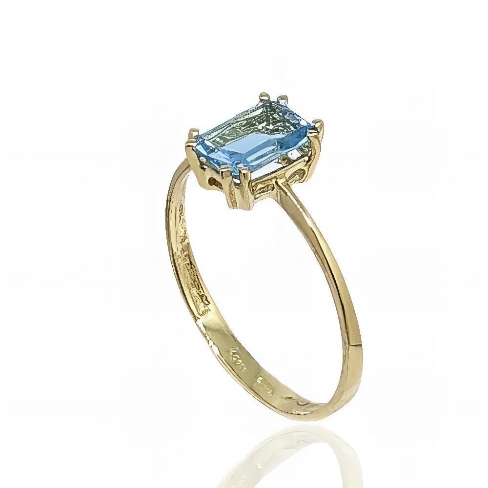 Sortija Oro Amarillo de 18 quilates con Aguamarina de 8mm montada en garras.