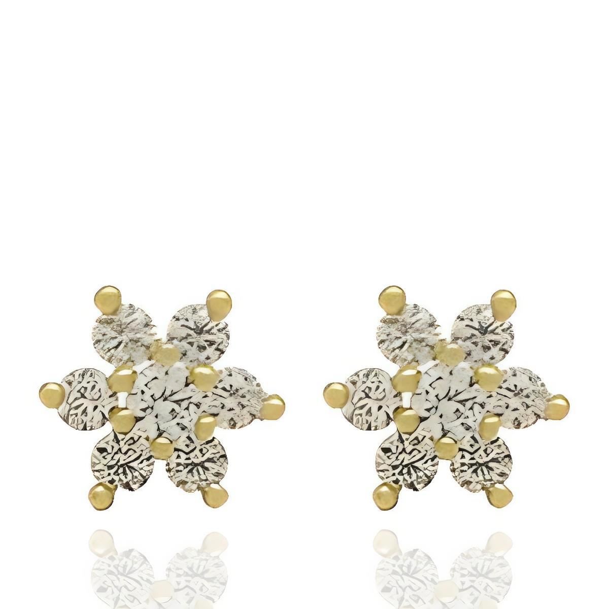 Pendientes Oro Amarillo de 18 quilates de rosetón con circonitas, 6mm y cierre de presión. Opción de sortija a juego.