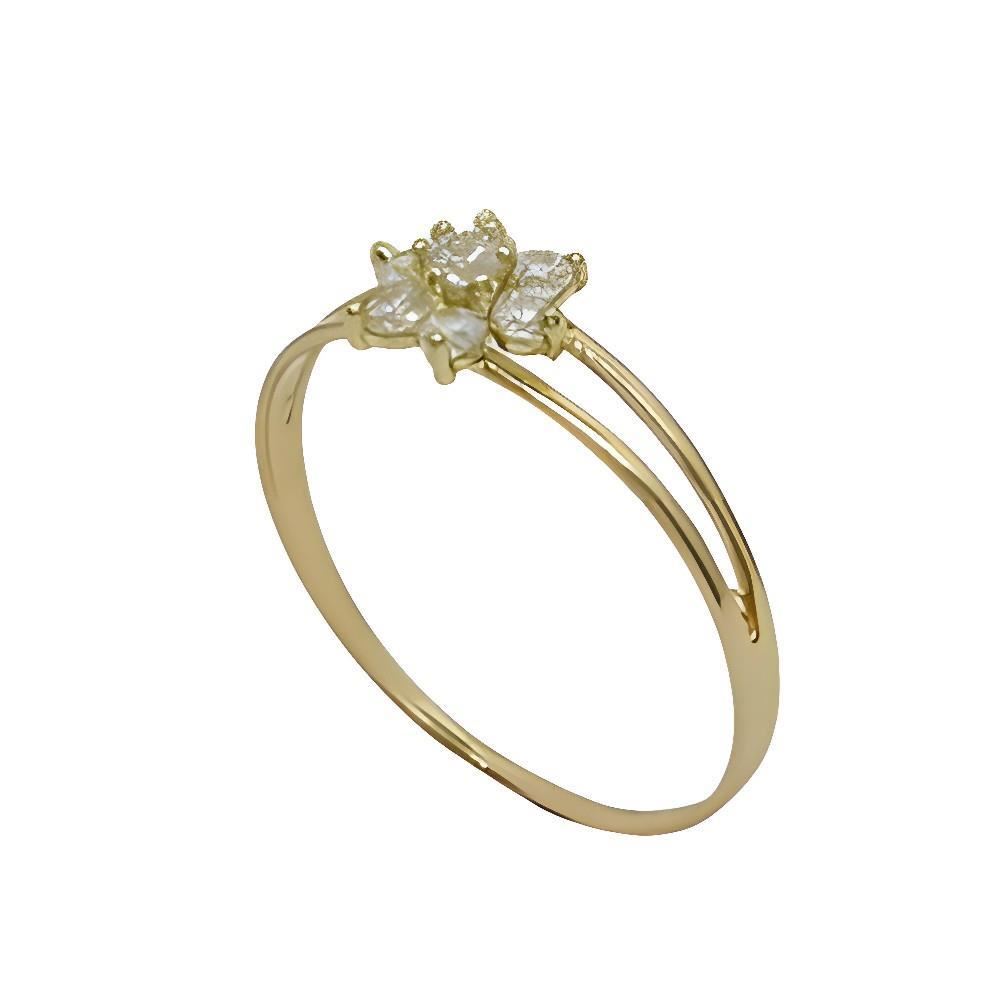 Sortija Oro Amarillo de 18 quilates de rosetón con circonitas, 6m y brazo en disminución. Opción de pendientes a juego.
