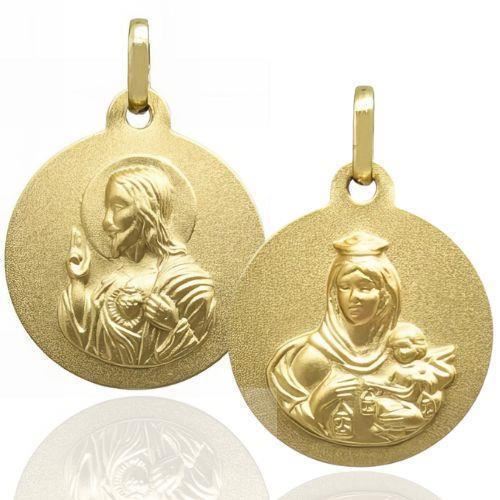Escapulario Oro Amarillo de 18 quilates con Virgen del Carmen y Corazón de Jesús, 20mm sin contar asa.