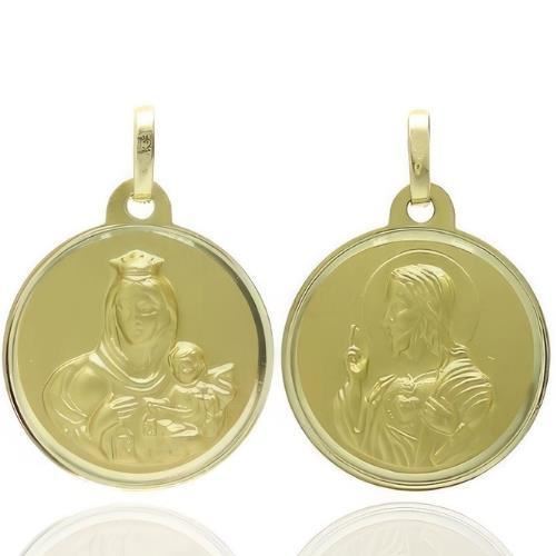 Escapulario Oro Amarillo de 18 quilates con Virgen del Carmen y Corazón de Jesús, 16mm sin contar asa.