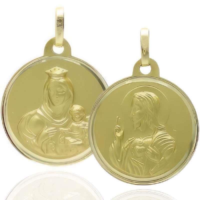 Escapulario Oro Amarillo de 18 quilates con Virgen del Carmen y Corazón de Jesús, 18mm sin contar asa.