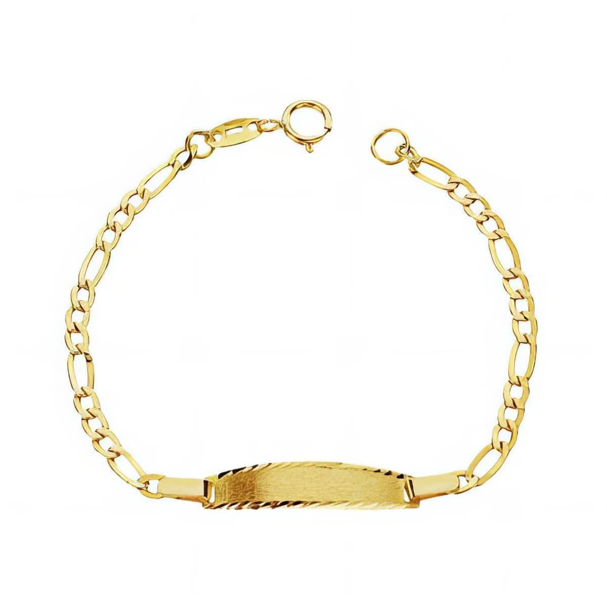 Pulsera bebé Oro Amarillo de 18 quilates con cadena de 3x1 y placa de 4x20mm, largo de 12cm.