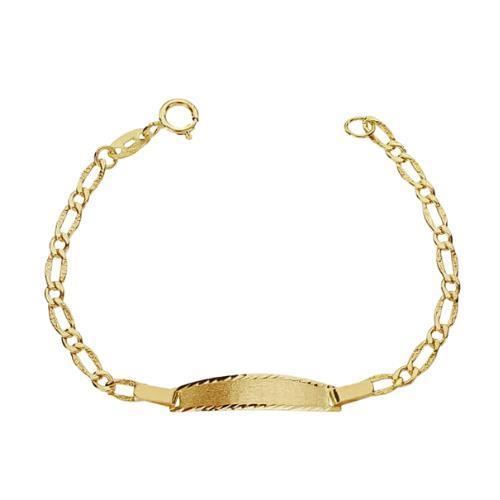 Pulsera bebé Oro Amarillo de 18 quilates con cadena de 1x1 y placa de 4.6mm de ancho y 20mm de largo, medida de la pulsera 12cm.