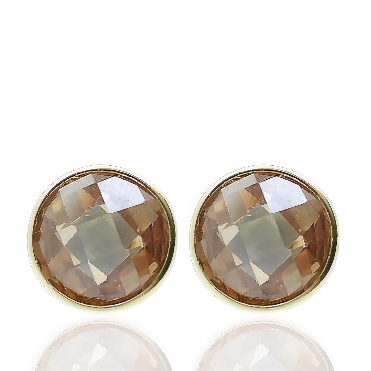 Pendientes Oro Amarillo de 18 quilates con piedra color fumé, 10mm y cierre de presión.